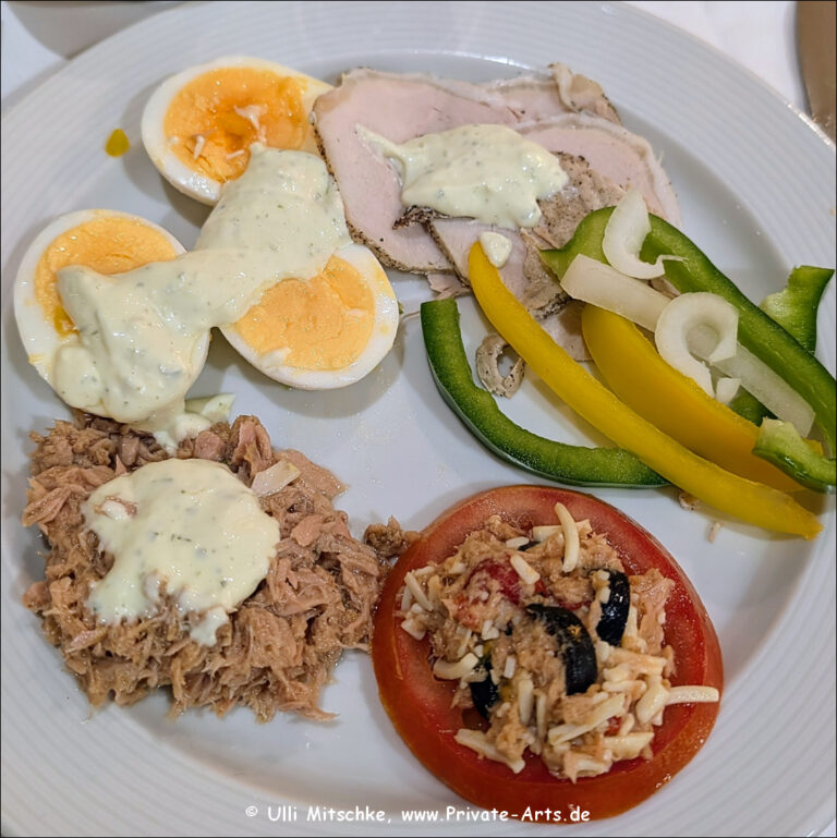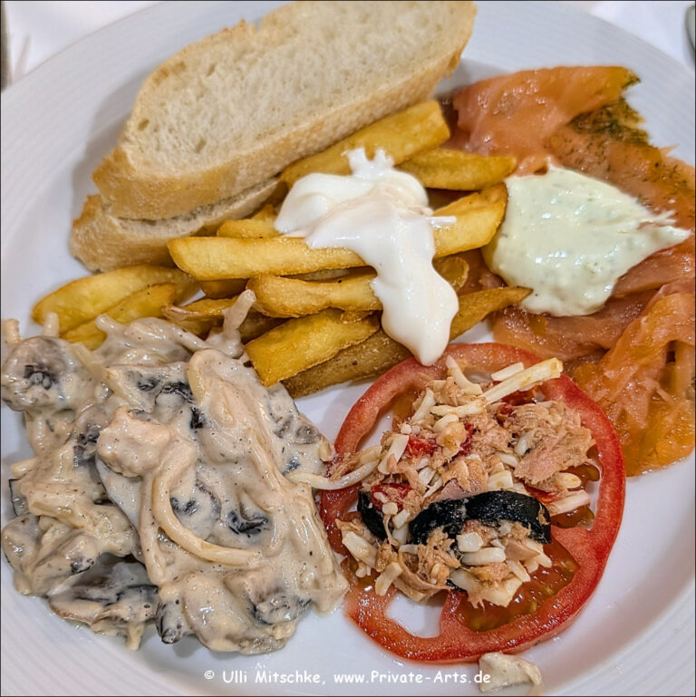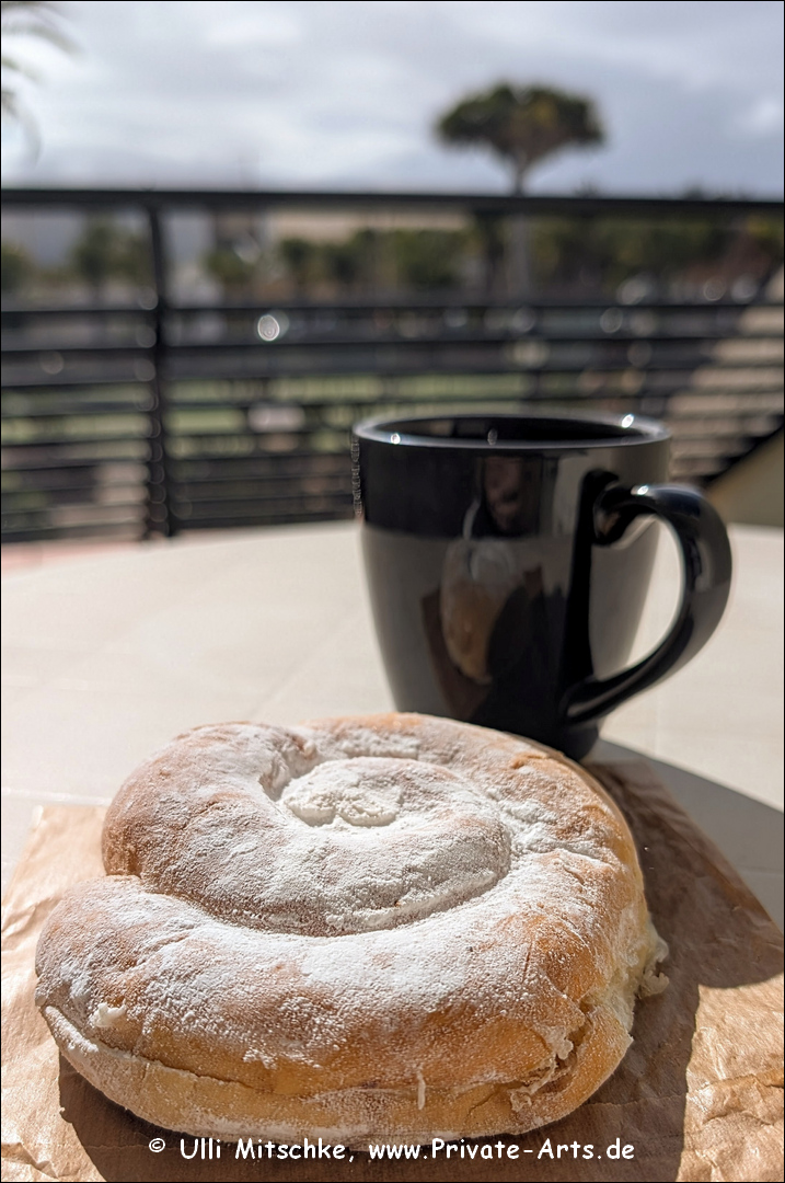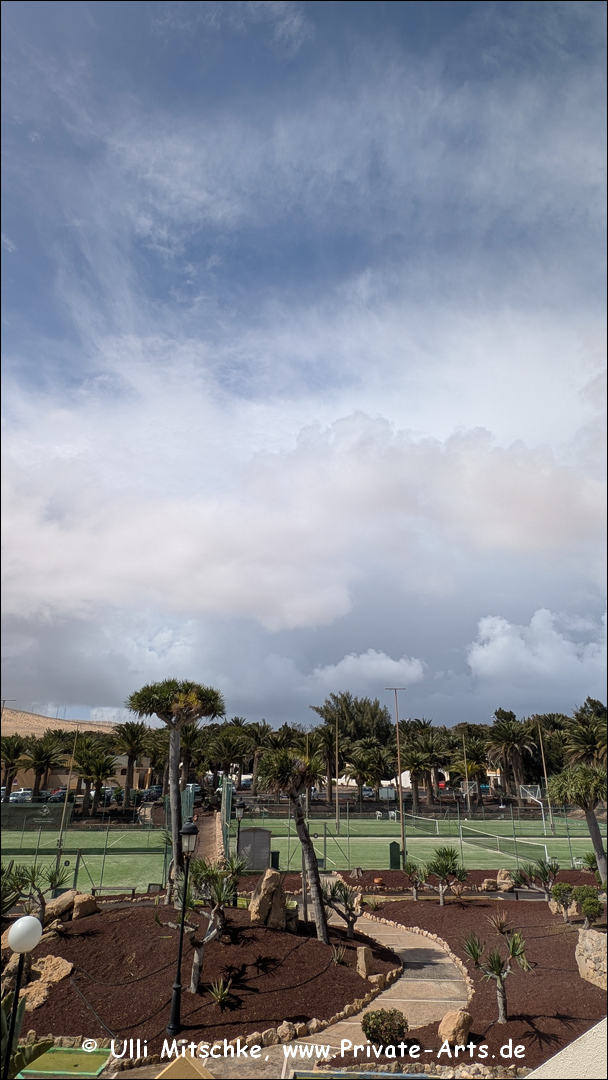 der letzte Tag bricht an, morgen geht’s zurück … nochmal ein paar Fotos vom Hotel aus, schnell noch zum Bäcker ein paar Kleinigkeiten holen, um 12:00h wird der Mietwagen wieder abgeholt … Koffer packen mit Kaffeepause auf dem Balkon, abends dann nochmal das Buffet auskosten … dann wird’s draußen auch noch ungemütlich, macht die Abreise etwas leichter…