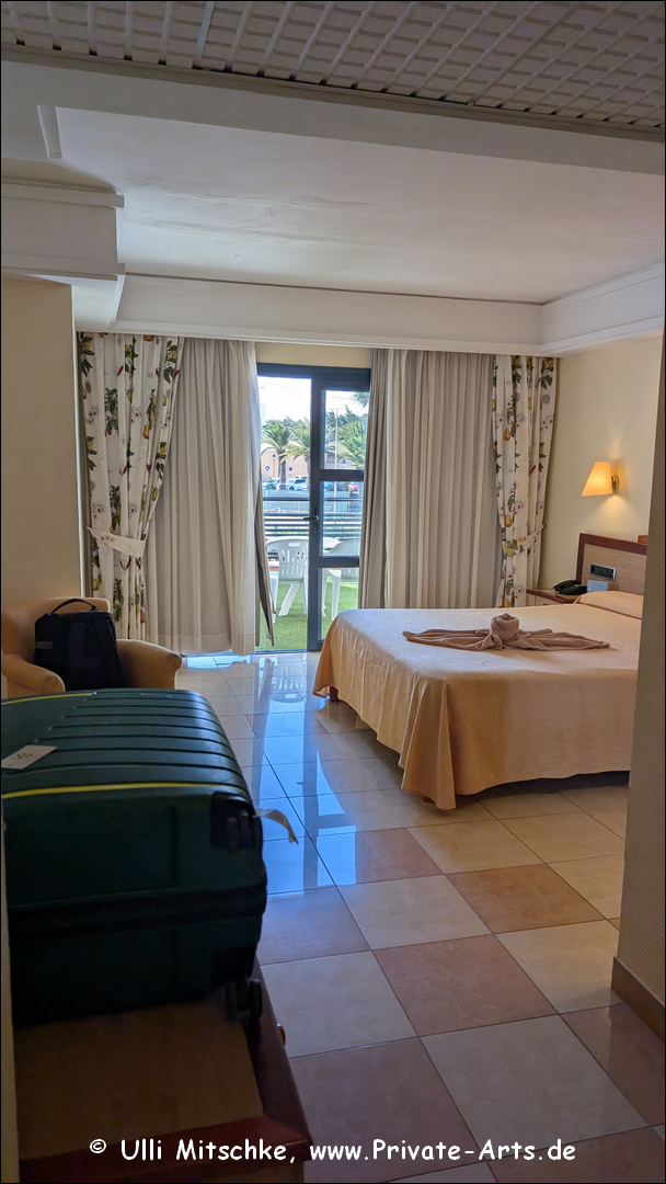 das Gespräch mit der Recepción war erfolgreich, werde also das Zimmer tauschen, hatte vorsichtshalber den Koffer auch noch nicht ausgepackt, hab dann also keinen Meerblick mehr, dafür die Nachmittags- und Abendsonne, ist mir irgendwie wichtiger, Meer kann ich den ganzen Tag sehen, entweder am Strand oder auf Tour …