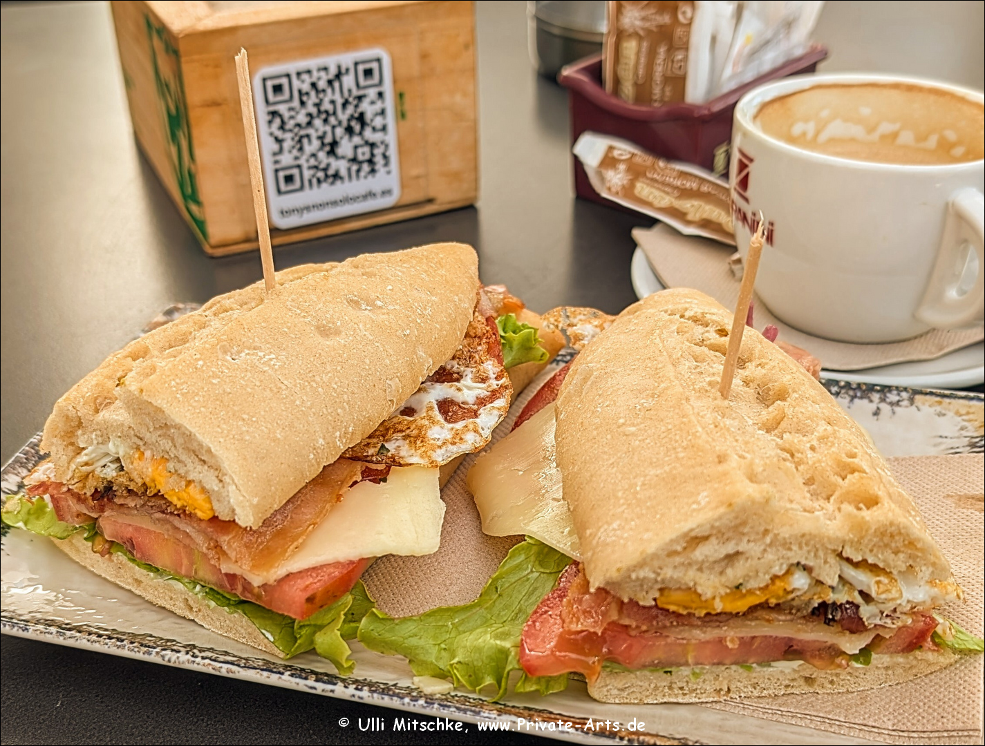 no breakfast, dafür in der Cafetería Tonysnonsolocafé dann ein leckeres ‚Bocadillo Bacon‘ mit allem Zappzerapp, dazu einen vorzüglichen Cappuccino, das reicht dann mal für ne Zeit lang … ein paar Aufnahmen von Costa Calma, dann auf zum Strand von El puertito … kurzer Stopp in Tarajalejo, danach einen kleinen Einkauf tätigen bei ‚Galvan Marrero – Boutique d Pan‘ den kleinen Einkauf gibt’s dann als ‚pastel en el balcon‘ … noch ein paar Abendaufnahmen … dann guts Nächtle