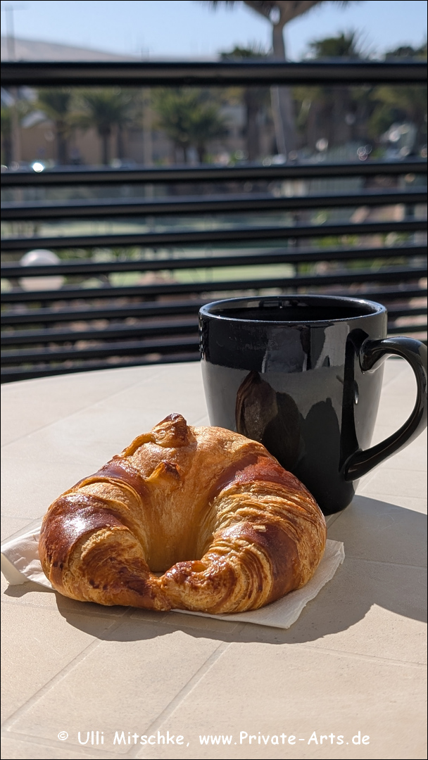 man wagt es ja kaum zu schreiben, schon wieder ein Faulenzertag … ausschlafen, zu lange rumdaddeln, Frühstück verpassen, in den Ort gehen und als „Ersatz“ ein leckeres Eis einverleiben, vom Bäcker ne Kleinigkeit mitnehmen und zur Kaffeezeit auf dem Balkon genießen, abends das Hotelbuffet plündern … fertig